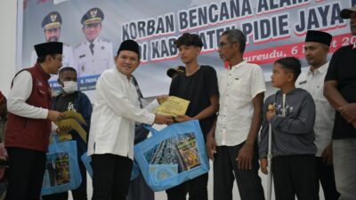 Kegiatan tersebut turut dihadiri Bupati Aceh Tamiang, camat, serta kepala desa setempat dengan estimasi sekitar 50 warga yang hadir.