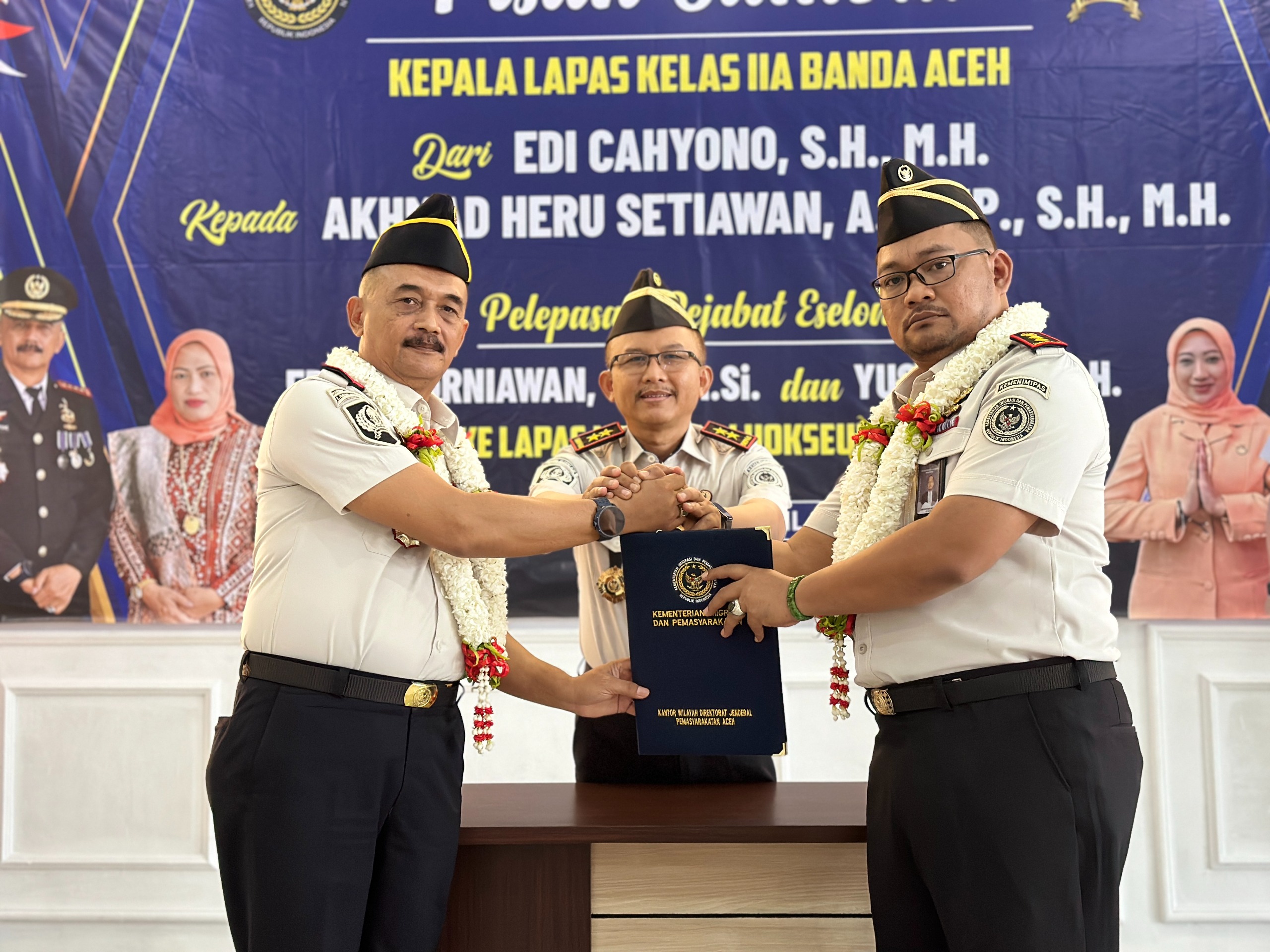 Sementara itu, Akhmad Heru Setiawan menyampaikan komitmennya untuk melanjutkan berbagai program yang telah berjalan baik, sekaligus mendorong inovasi guna meningkatkan kualitas layanan dan pembinaan di Lapas Banda Aceh.