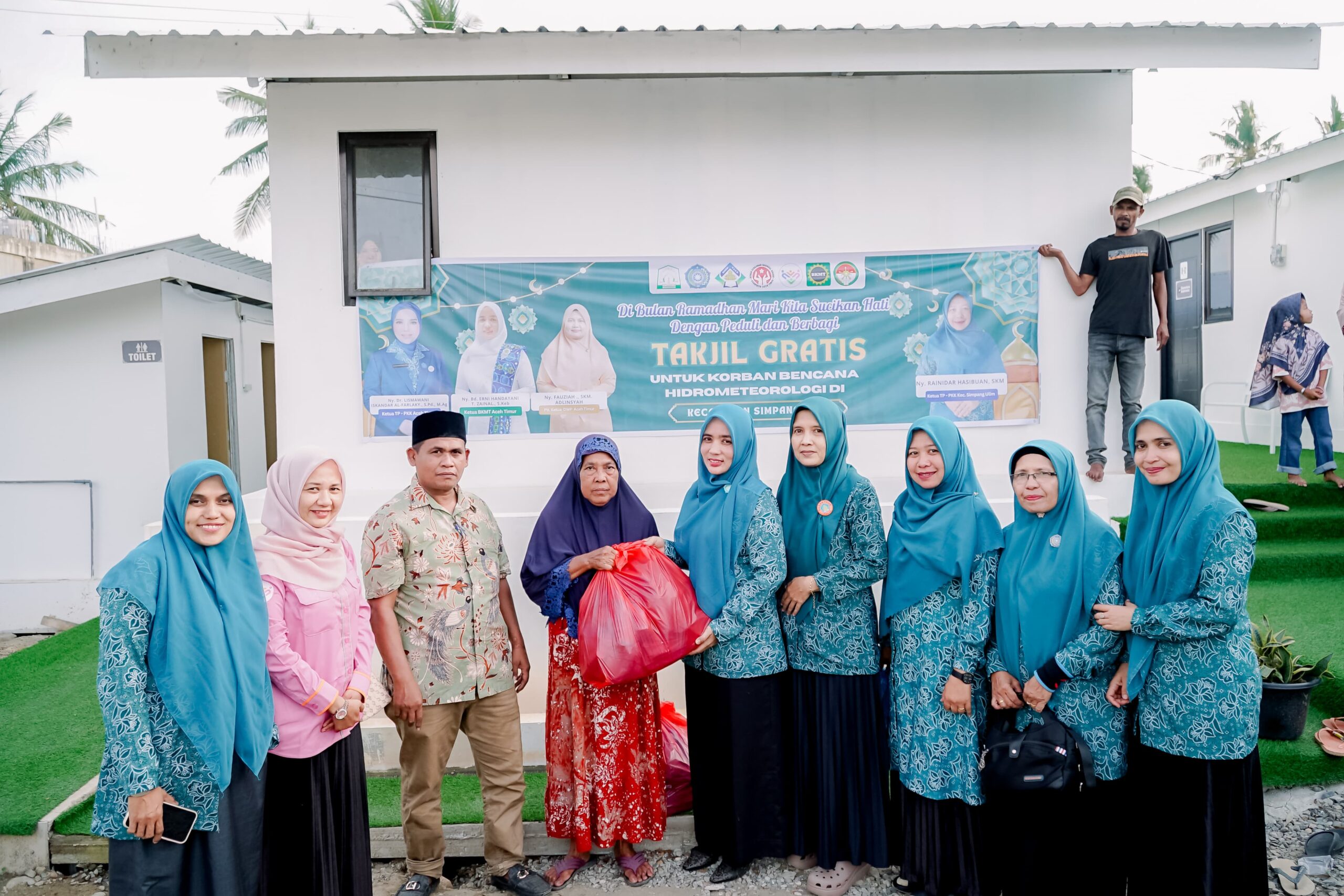 Aceh Timur – GaoelNews .com – Istri Wakil Bupati Aceh Timur Ny. Erni Handayani T. Zainal Abidin S.Keb bersama Tim Penggerak Pemberdayaan dan Kesejahteraan Keluarga (TP PKK), Pokja Bunda PAUD, Dekranasda, Badan Kontak Majelis Taklim (BKMT) dan Dharma Wanita Persatuan Aceh Timur menggelar aksi sosial dengan membagikan takjil gratis kepada warga terdampak bencana hidrometeorologi di Desa Blang Nie Kecamatan Simpang Ulim. Selasa, 04 Maret 2026.