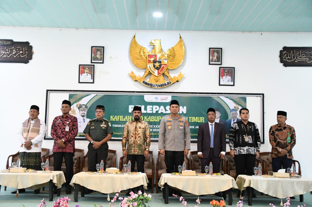 Aceh Timur – Gaoelnews.com -Kapolres Aceh Timur, Polda Aceh, AKBP Irwan Kurniadi, S.I.K. meghadiri pelepasan dan keberangkatan Kafilah Aceh Timur untuk mengikuti Musabaqah Tilawatil Qur’an (MTQ) ke XXXVII tingkat Provinsi Aceh di Kabupaten Pidie Jaya yang berlangsung di Pendopo Idi, Kamis, (30/10/2025) sore.