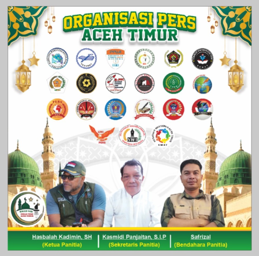 Acara religius ini mengusung tema “Maulid Rasulullah SAW, Spirit Rahmatan Lil Alamin” sebagai momentum memperkuat nilai-nilai keislaman, solidaritas, dan sinergi antar insan pers di Aceh Timur.
