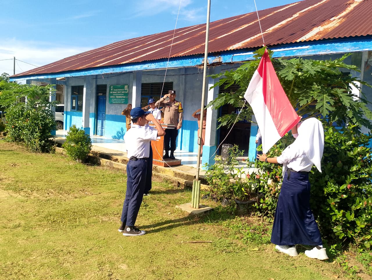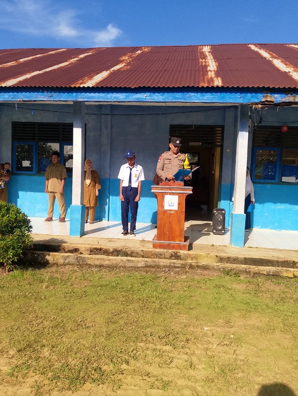 Pada kesempatan tersebut, Bhabinkamtibmas bertindak sebagai inspektur upacara dalam kegiatan upacara bendera rutin hari Senin. Dalam amanatnya, ia menyampaikan pesan kamtibmas kepada seluruh siswa dan siswi, khususnya mengenai bahaya penyalahgunaan narkoba dan judi online yang saat ini marak di kalangan remaja.