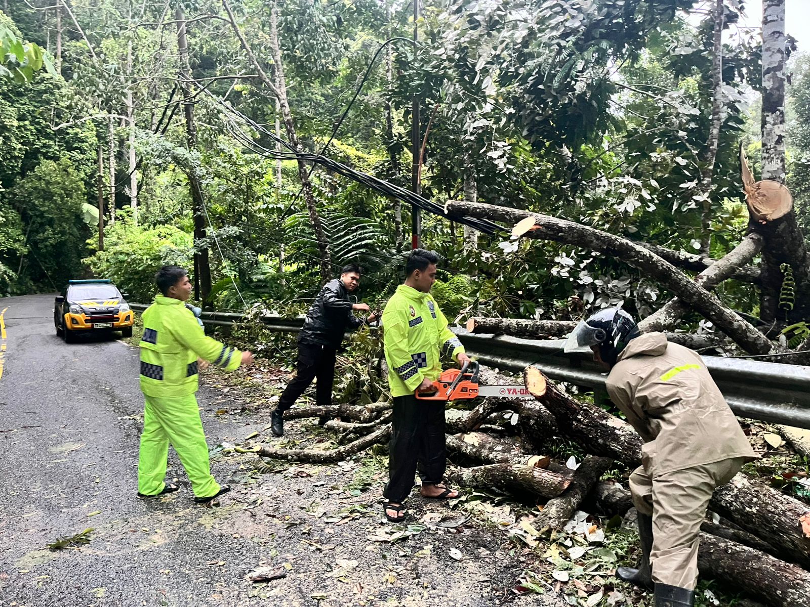 Pohon berukuran besar tersebut tumbang dan menutup hampir seluruh badan jalan, sehingga berpotensi menimbulkan kemacetan serta membahayakan pengguna jalan. Mendapatkan laporan dari masyarakat, tim langsung menuju lokasi untuk melakukan penanganan cepat agar arus lalu lintas kembali lancar.