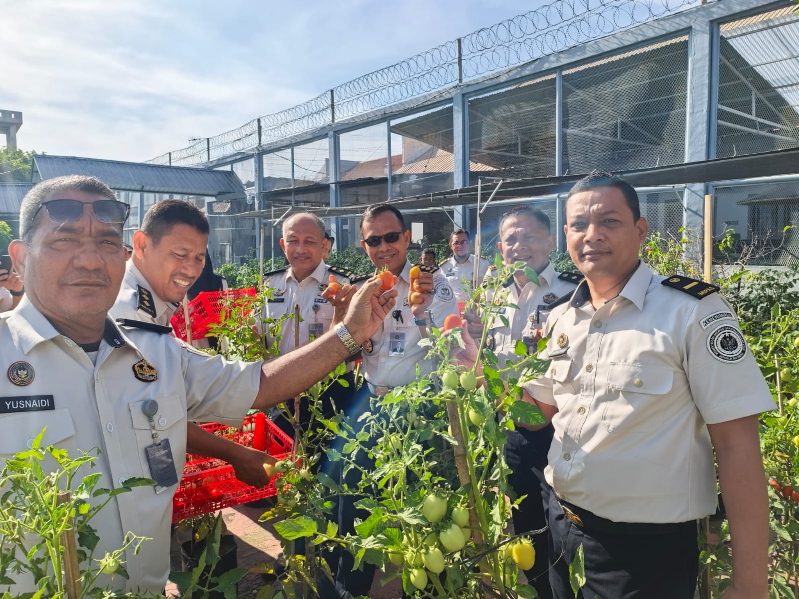 Kegiatan tersebut berlangsung di salah satu area lahan, dengan menggunakan metode polybag, tanaman tomat di panen secara langsung oleh Kepala Lapas, Edi Cahyono, di ikuti para Pejabat Struktural dan Staf bidang terkait.