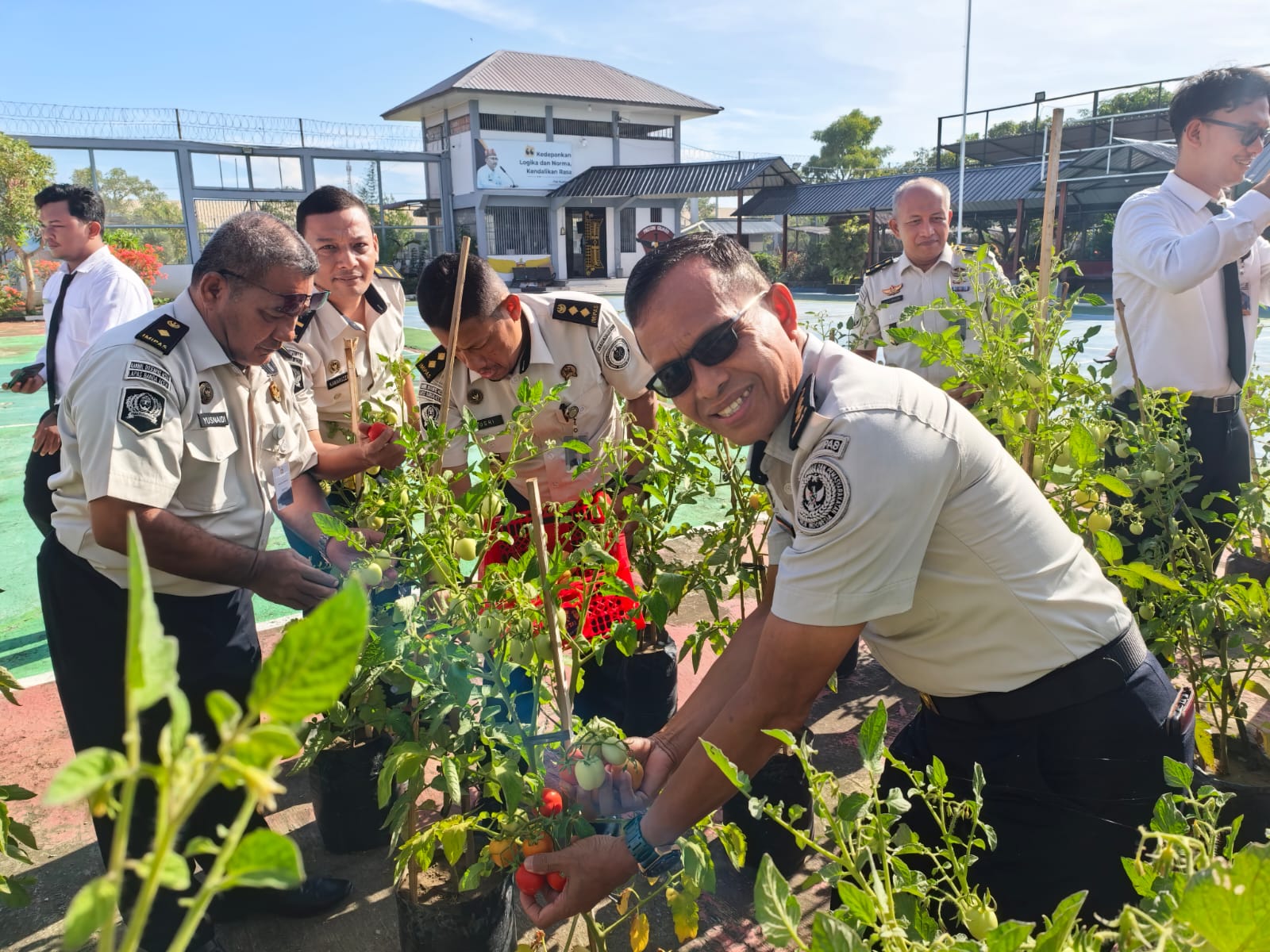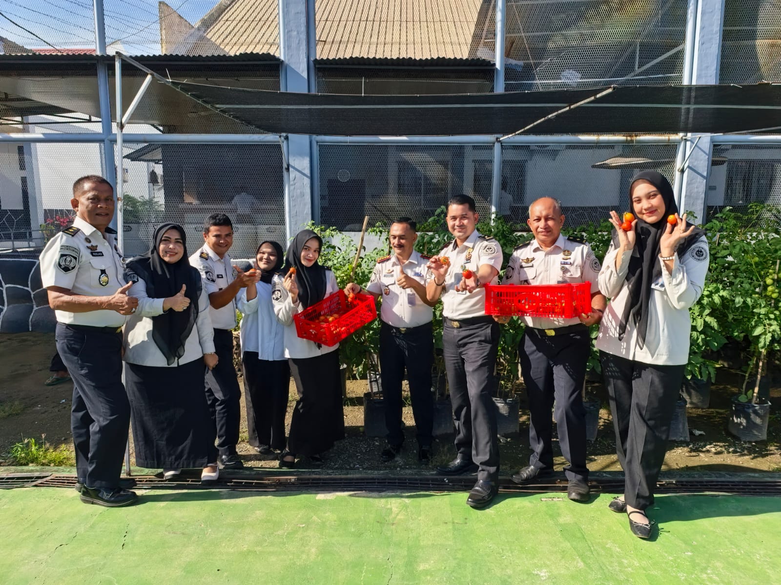 “Pada hari ini, saya bersama Jajaran melaksanakan kegiatan panen perdana tanaman tomat, sebanyak belasan kilogram berhasil kami lakukan sebagai bentuk nyata dalam mendukung ketahanan pangan dan pembinaan kemandirian yang produktif bagi Warga Binaan, sehingga nanti nya akan bermanfaat bagi WBP pada saat mereka menjalani reintegrasi sosial di tengah masyarakat”ungkap edi.