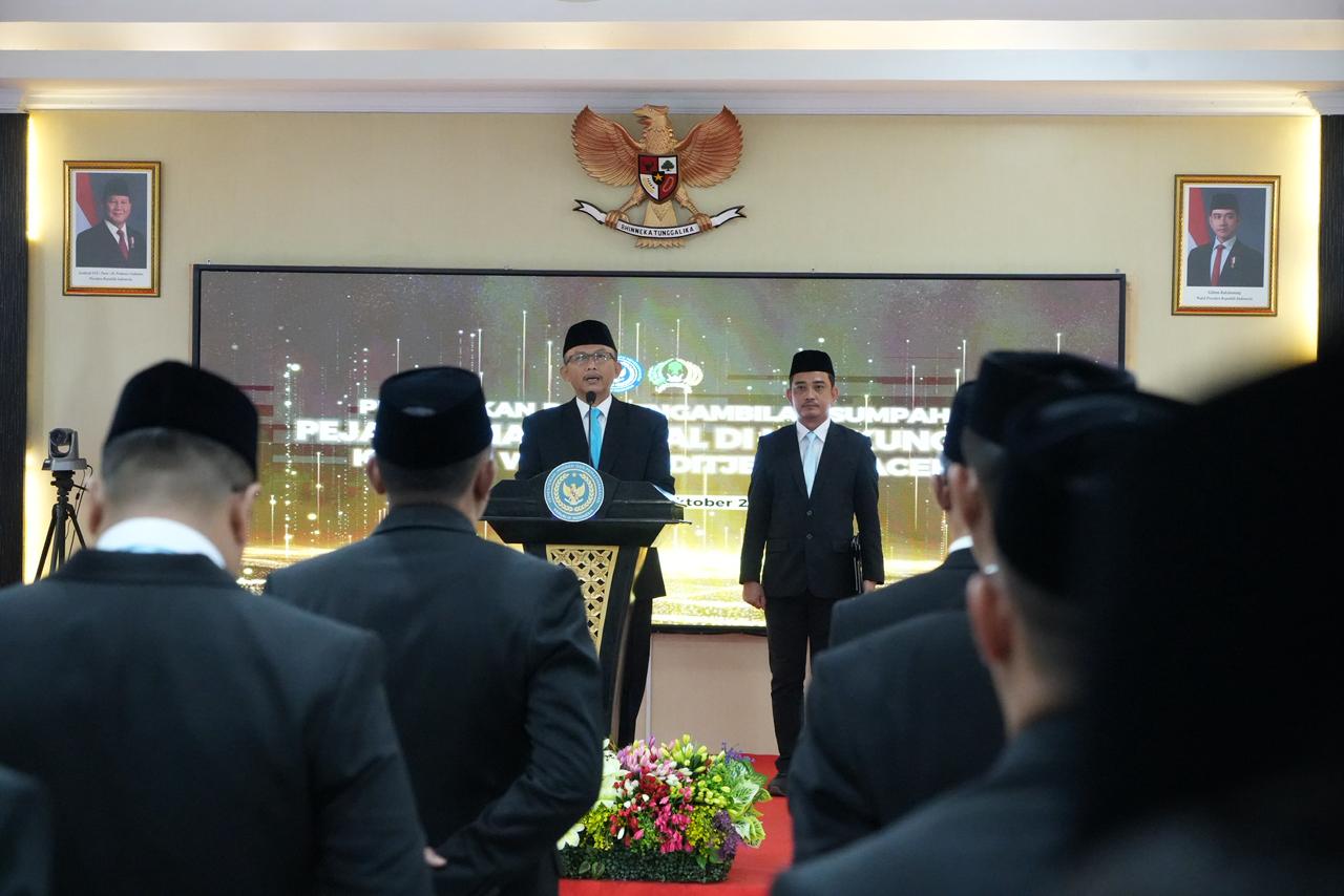Banda Aceh,- GaoelNews .com – Menindaklanjuti Keputusan Menteri Imigrasi dan Pemasyarakatan Republik Indonesia Nomor M.IP-459.SA.03.03 Tahun 2025 tanggal 12 September 2025 tentang Pemberhentian dari Jabatan Manajerial dan Non Manajerial serta Pengangkatan dalam Jabatan Administrasi di Lingkungan Kementerian Imigrasi dan Pemasyarakatan serta Keputusan Menteri Imigrasi, dan Keputusan Menteri Imigrasi dan Pemasyarakatan Republik Indonesia Nomor M.IP-461.SA.03.03 Tahun 2025 tanggal 16 September 2025 tentang Pemberhentian dan Pengangkatan dari dan dalam Jabatan Manajerial dan Non Manajerial di Lingkungan Kementerian Imigrasi dan Pemasyarakatan, dengan ini Kantor Wilayah Direktorat Jenderal Pemasyarakatan Aceh menggelar acara pelantikan dan pengambilan sumpah jabatan di Aula Bangsal Garuda, jumat (03/10/2025).