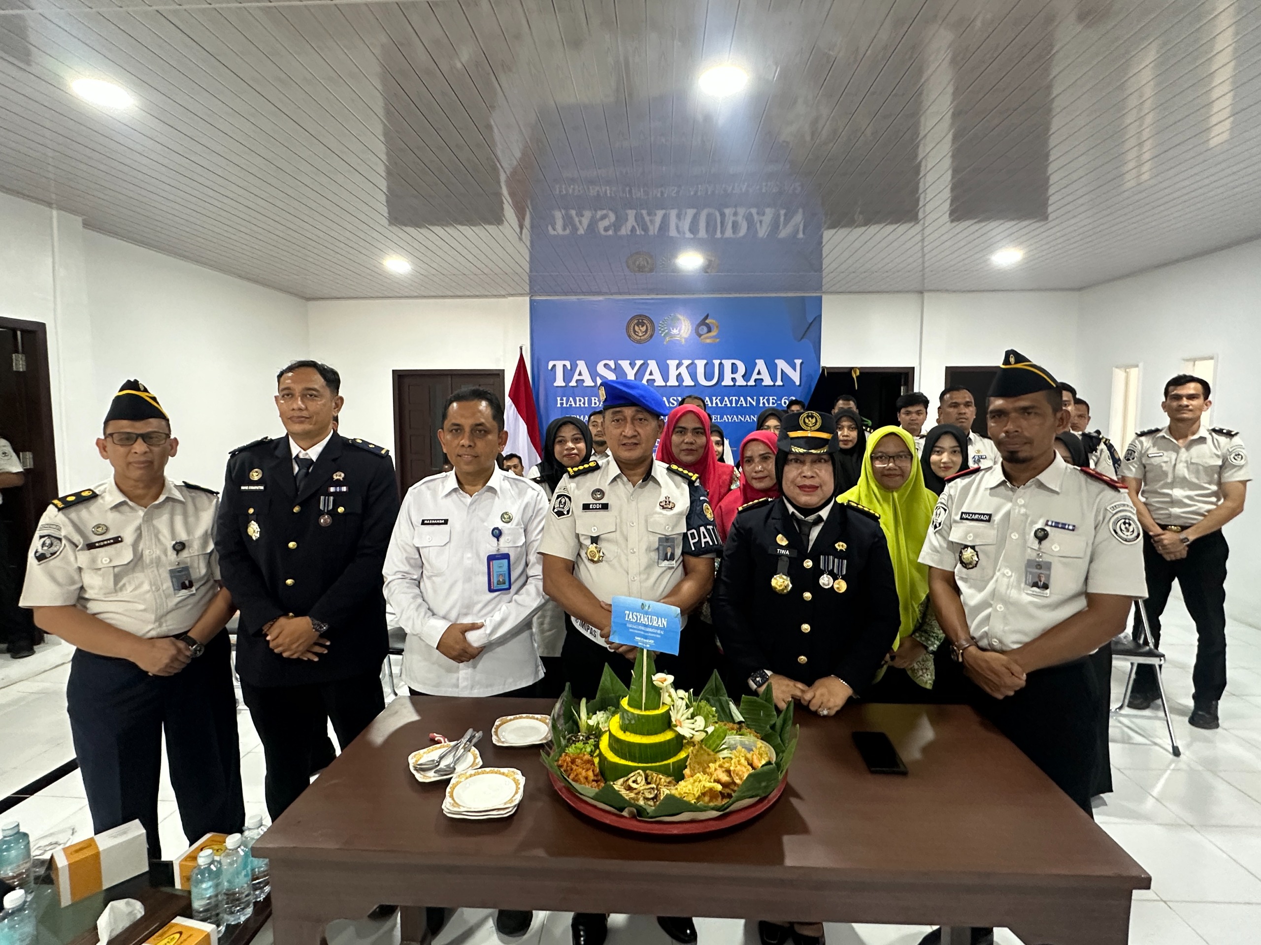 Kegiatan dilanjutkan dengan prosesi pemotongan tumpeng sebagai simbol rasa syukur atas pengabdian Pemasyarakatan yang kini telah memasuki usia ke-62 tahun, sekaligus menjadi momentum untuk memperkuat komitmen dalam meningkatkan kualitas kinerja ke depan.