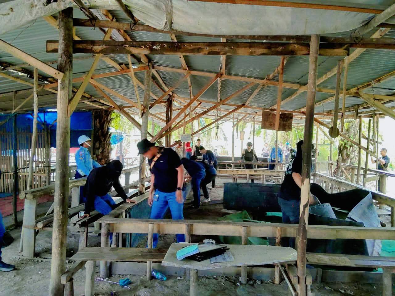 Tim gabungan yang dipimpin oleh Kasat Reskrim Polres Kampar AKP Gian Wiatma Jonimandala, didampingi Kasat Intelkam Polres Kampar AKP Josrizal, Kapolsek Tambang AKP Aulia Rahman, dan Kapolsek Perhentian Raja Iptu Ferry Fadly, langsung bergerak menuju lokasi pertama di Jl. Bupati Desa Kualu. Di lokasi ini, tim tidak menemukan aktivitas sabung ayam, namun menemukan dua gelanggang sabung ayam dan 3 unit bangunan semi permanen yang kemudian dibongkar oleh tim gabungan.