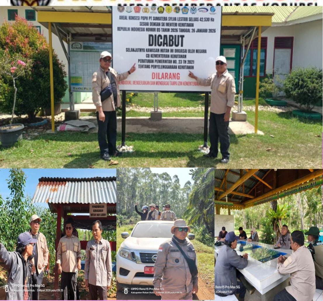 Dikabarkan bahwa, Kedatangan Tim Kemenhut RI ke PT. SSL Sektor Pasir Pengaraian tersebut, setelah Satuan Tugas Penertiban Kawasan Hutan (Satgas PKH) secara resmi telah memasang segel dan plank tentang pencabutan izin terhadap PT.SSL bersamaan dengan beberapa Perusahaan lainnya di Wilayah Sumut dan Riau beberapa waktu yang lalu, berdasarkan Peraturan Presiden (Perpres) Nomor 5 Tahun 2025 yang dibentuk untuk menertibkan kegiatan (Perusahaan) perkebunan, pertambangan, dan industri yang tidak sesuai dengan peruntukan kawasan hutan.