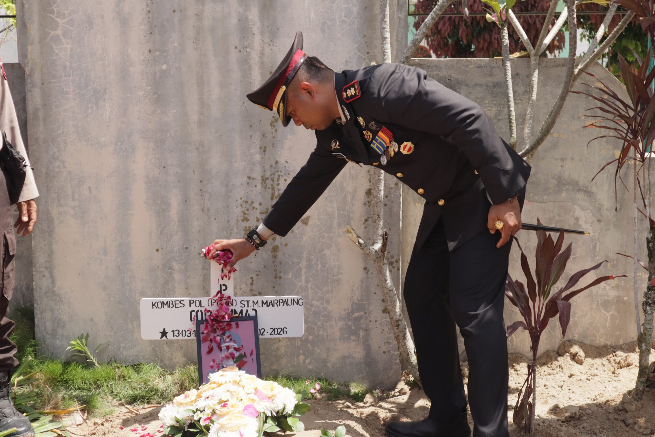 “Untuk itu saya mengajak marilah kita berlapang dada untuk memaafkan segala kehilafan serta kesalahan almarhum, baik yang disengaja maupun tidak disengaja yang mungkin dilakukan selama ini baik dalam pergaulan sehari-hari, dalam dinas maupun di masyarakat,” ujar Kapolres.