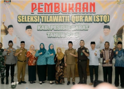 PESISIR BARAT – GaoelNews.com – 3 Nopember 2025 Bupati Pesisir Barat (Pesibar), Dedi Irawan, resmi membuka kegiatan Seleksi Tilawatil Quran (STQ) tingkat kabupaten Tahun 2025, di Lobi Teluk Stabas Lantai 1 Gedung Marga Sai Batin Komplek Perkantoran Pemkab Pesibar, Senin (3/11/2025).