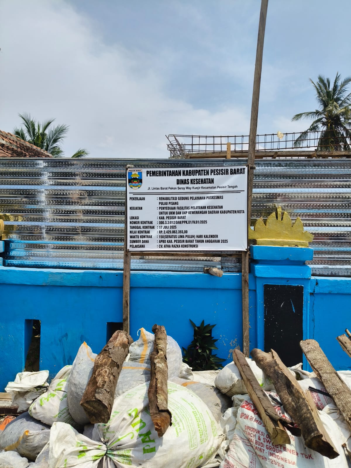Bangunan yang menelan anggaran Rp2,5 miliar itu dikerjakan oleh CV. Atha Razka Konstruksi. Atas temuan itu LSM GMBI Pesisir Barat sudah melayangkan surat klarifikasi kepada Dinas Kesehatan dan Kontraktor.