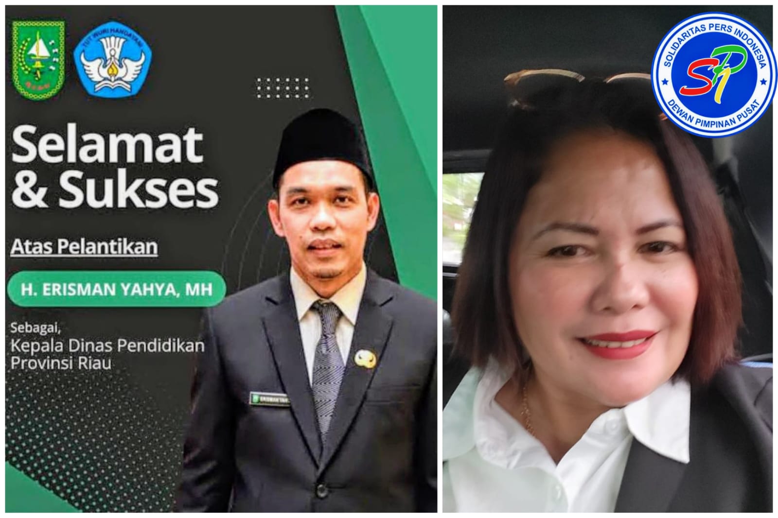 Tak luput seluruh jajaran DPP SPI turut mengucapkan selamat atas terpilihnya H Erisman Yahya MH atas dipercaya memimpin Disdik Riau, semoga kedepannya dunia pendidikan Riau lebih berkembang pesat, ucap Suriani Siboro SH.P