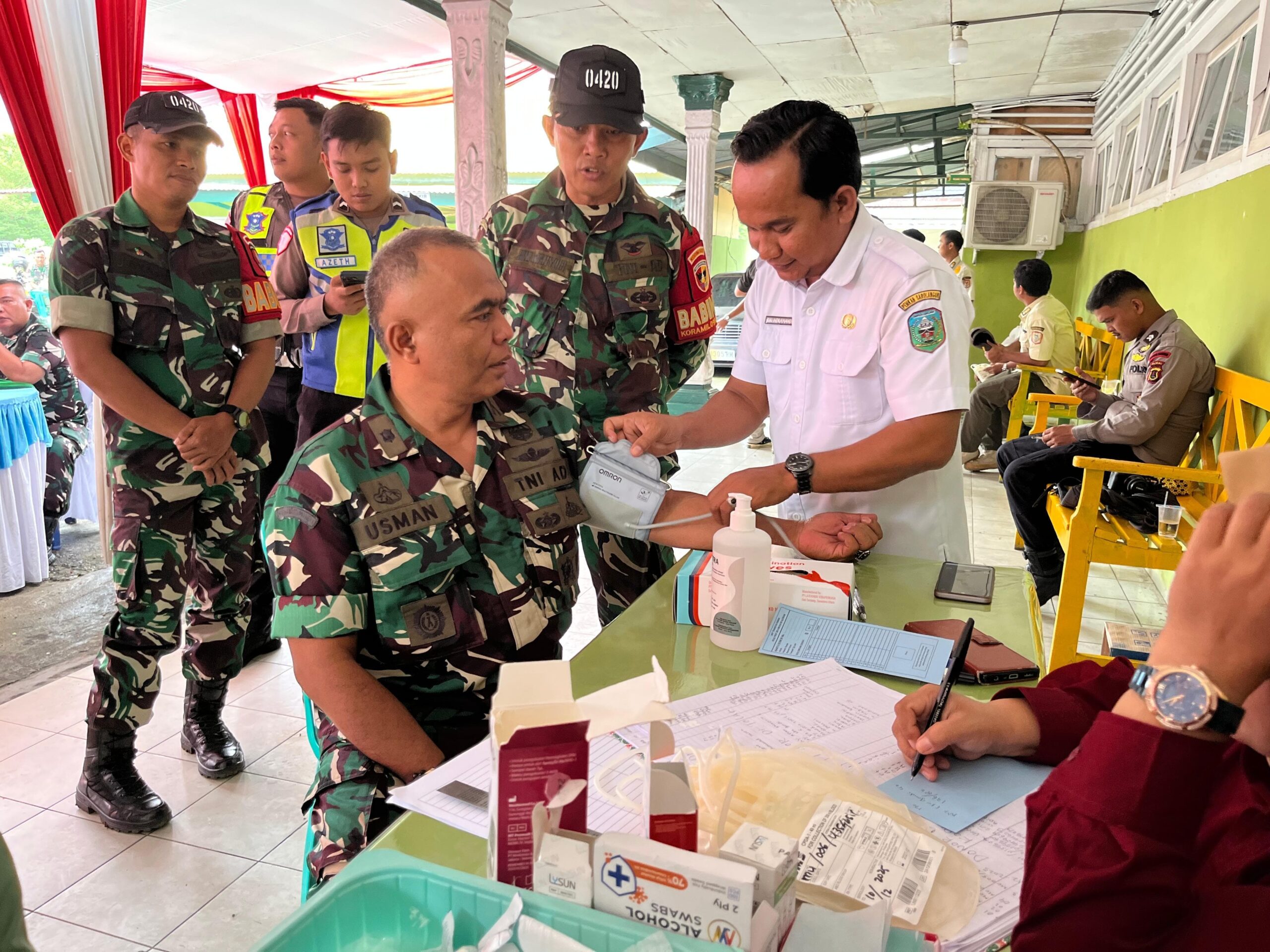 MERANGIN JAMBI, Gaoelnews.Com – Dalam rangka memperingati Hari Juang TNI AD Tahun 2025, Kodim 0420/Sarko menggelar kegiatan Bakti Kesehatan bertempat di Polkes 02.10.14 Bangko. Kegiatan yang berlangsung sejak pukul 08.00 WIB ini mendapat sambutan antusias dari berbagai kalangan, dengan total peserta mencapai 300 orang. Peserta kegiatan berasal dari unsur TNI, Polri, Brimob, Satpol PP, organisasi masyarakat, tenaga medis, hingga masyarakat umum. Hal ini menunjukkan tingginya semangat kebersamaan dan kepedulian antar Instansi di wilayah Kabupaten Merangin dan Sarolangun.