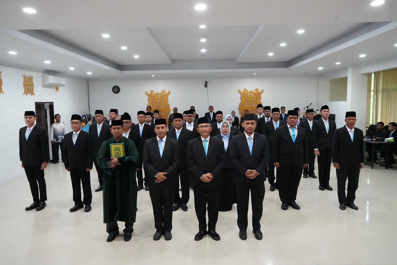 Banda Aceh, Gaoelnews.com – Kantor Wilayah Direktorat Jenderal Pemasyarakatan (Kanwil Ditjenpas) Aceh telah menyelenggarakan acara pelantikan dan pengambilan sumpah jabatan bagi 26 orang pejabat manajerial di lingkungannya, Jum’at (03/10/2025). Kegiatan ini merupakan tindak lanjut dari Keputusan Menteri Imigrasi dan Pemasyarakatan RI dalam upaya penguatan dan peningkatan kinerja organisasi Pemasyarakatan di Aceh.