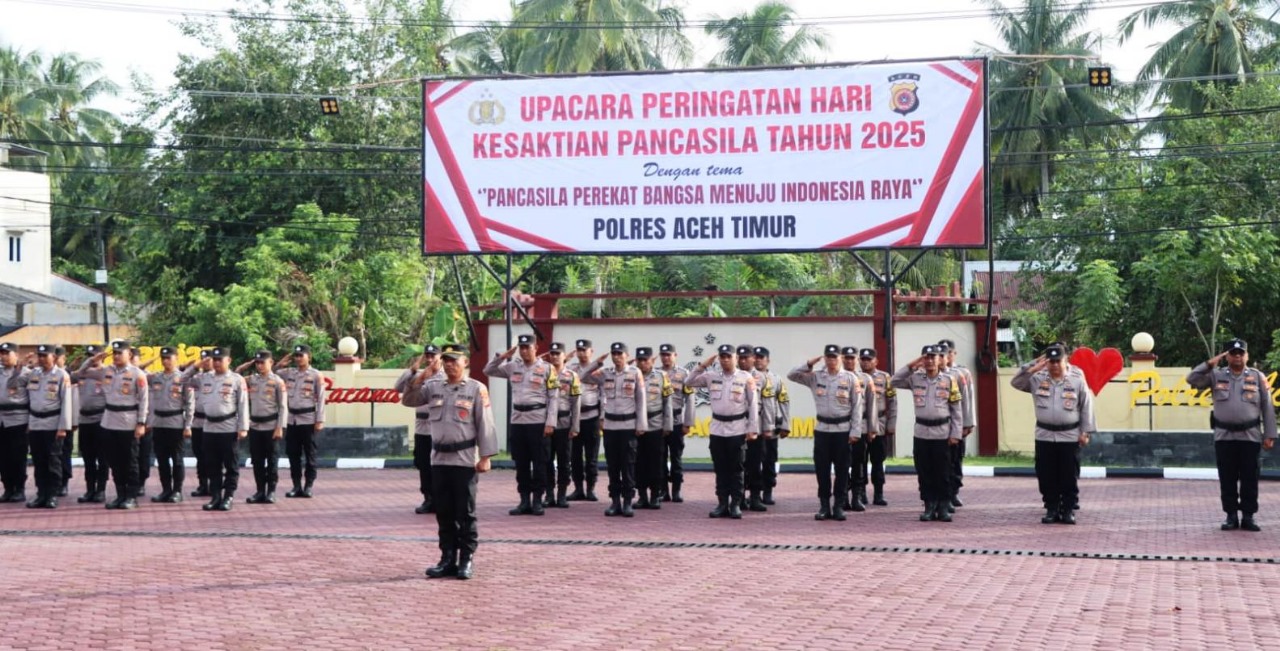 Aceh Timur, GaoelNews.com -Kepolisian Resor Aceh Timur, Polda Aceh menggelar Upacara Peringatan Hari Kesaktian Pancasila dengan tema “Pancasila Perekat Bangsa Menuju Indonesia Raya” bertempat Lapangan Apel Sarja Arya Racana, Rabu (01/10/2025) pagi.