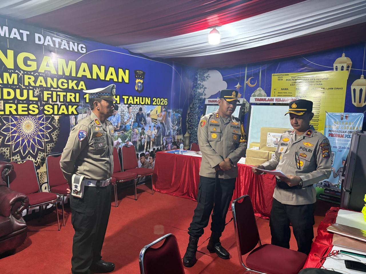 Siak – Gaoslnews.com – Dalam rangka memastikan kesiapan pengamanan arus mudik Idulfitri 1447 H, Kapolres Siak AKBP Sepuh Ade Irsyam Siregar, S.H., S.I.K., M.H. melakukan pengecekan langsung ke Pos Pelayanan Pengamanan (Pospam) Exit Tol Kandis Utara, Kecamatan Kandis, Kabupaten Siak, Senin (23/3/2026) malam.