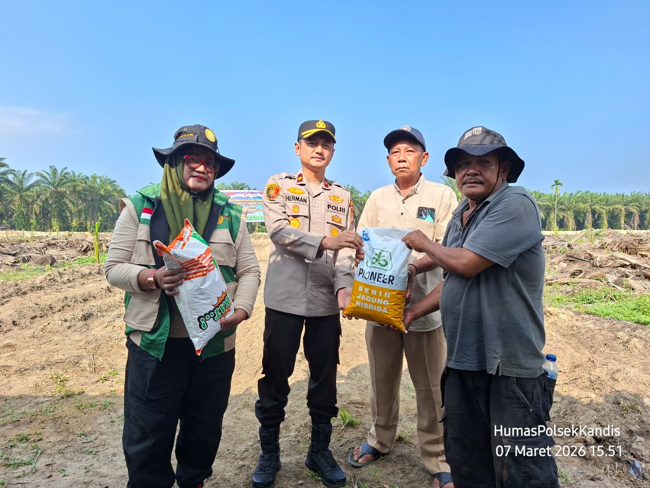 Adapun kegiatan penanaman dilakukan di lahan seluas 5 hektare dengan jenis lahan mineral, menggunakan bibit jagung jenis Pioner sebanyak 25 kilogram. Kegiatan ini melibatkan personel Polsek Kandis, seluruh Bhabinkamtibmas, serta unsur penyuluh pertanian dari Kecamatan Kandis.