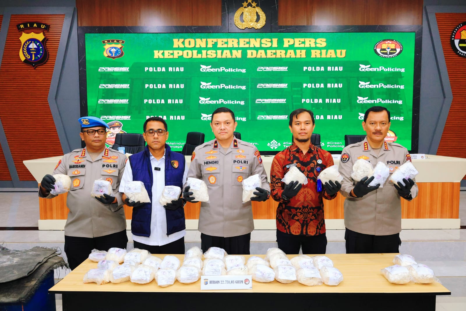 Pekanbaru, – GaoelNews .com -Polda Riau melalui Direktorat Reserse Narkoba berhasil mengungkap peredaran narkotika jenis heroin dalam jumlah besar di Kabupaten Bengkalis. Dalam pengungkapan tersebut, polisi menyita heroin seberat sekitar 22,7 kilogram dan menangkap dua orang tersangka.