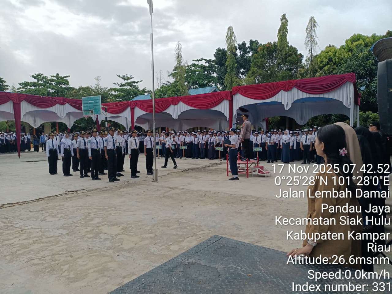 Kapolsek Siak Hulu, Kompol Hendra Setiawan, SH, bertindak sebagai pembina upacara sekaligus menyampaikan sosialisasi penerimaan peserta didik baru SMA Kemala Taruna Bhayangkara kepada siswa-siswi kelas IX.
