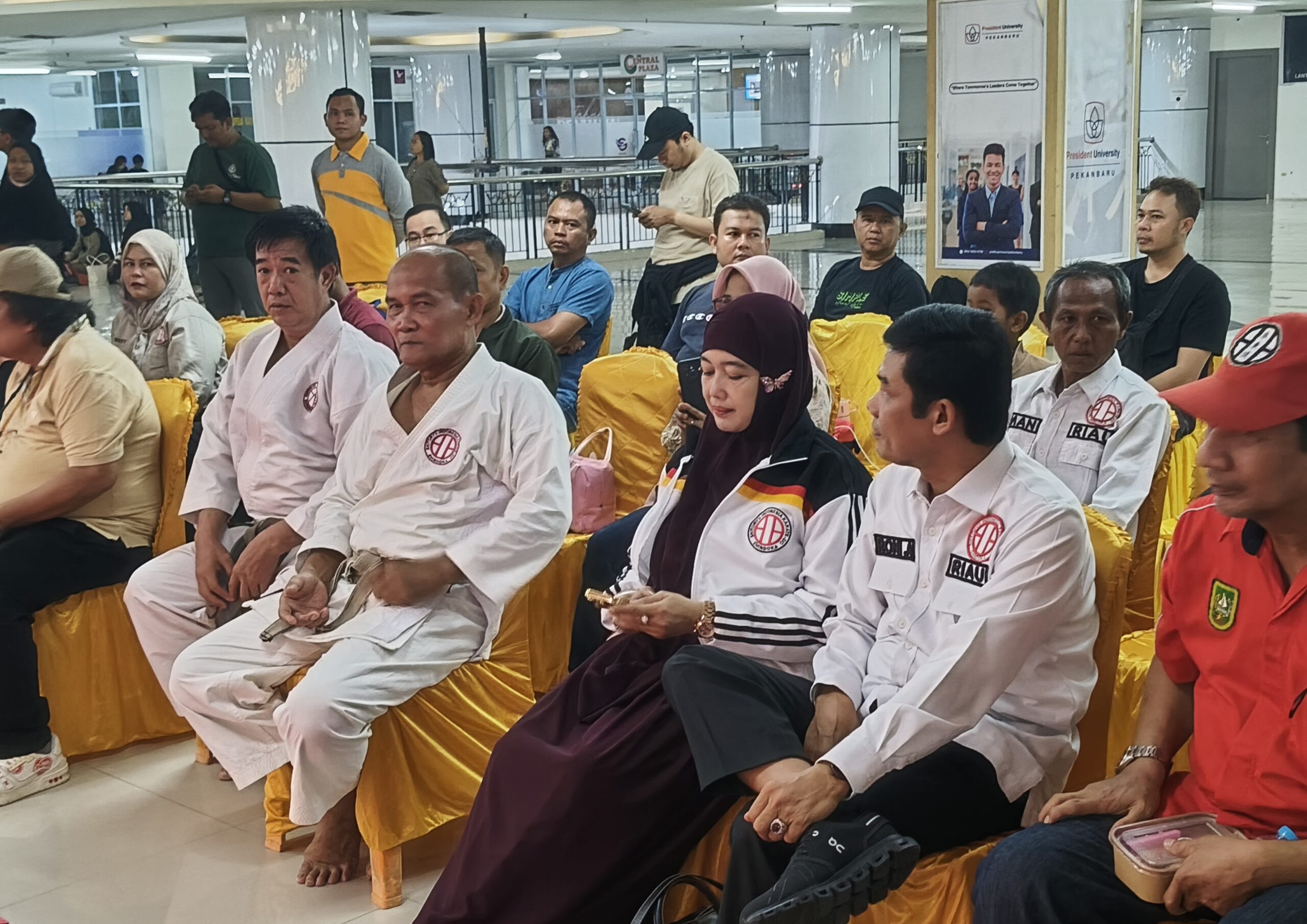 Doa bersama ini menjadi momen yang menyatukan seluruh peserta—baik karateka, orang tua, pelatih, maupun para sensei—sebelum memasuki proses ujian yang membutuhkan konsentrasi dan ketenangan.